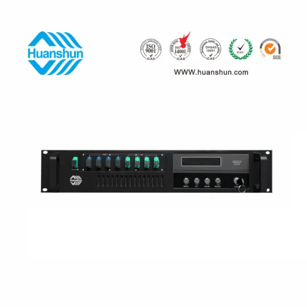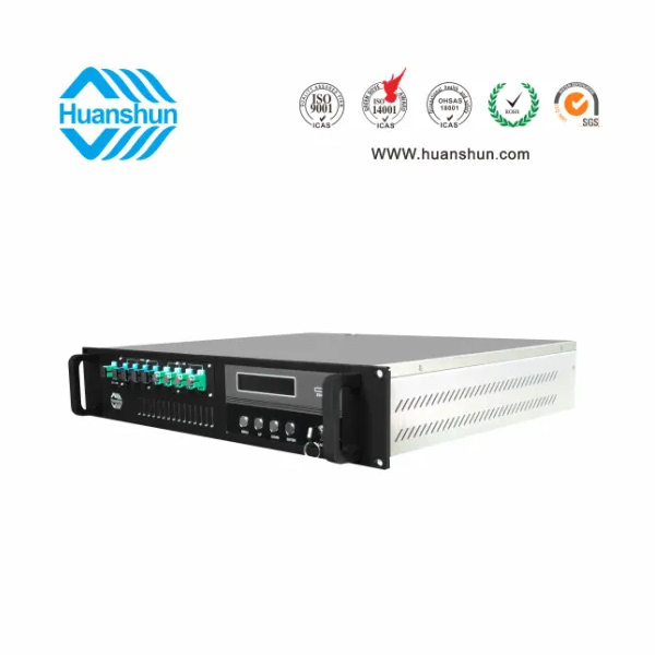 隨著廣電全光網(wǎng)傳輸光纖到戶方案(FTTH)的實(shí)施,當(dāng)EDFA在CATV系統(tǒng)中用作級(jí)聯(lián)放大時(shí),系統(tǒng)C/N會(huì)嚴(yán)重劣化,因此要求EDFA具有高的飽和輸出功率、低的失真,而鉺鐿共摻(EYDFA)雙包層大功率光纖放大器滿足這一需求,以適應(yīng)當(dāng)前FTTH和FTTB網(wǎng)絡(luò)的需求。FTTH除傳輸1550nm CATV光信號(hào)的同時(shí),還需E/GPON DATA光信號(hào)傳輸,合波型大功率光纖放大器是在EYDFA的基礎(chǔ)上結(jié)合FWDM器件,有機(jī)地把1550波段CATV光信號(hào)與1310/1490nm PON DATA光信號(hào)進(jìn)行合波傳輸。