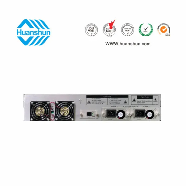 大功率光纖放大器EYDFA | YGF1504-16C | 19 " 2U標(biāo)準(zhǔn)機(jī)箱,-5 ~ +10 d Bm輸入,4路標(biāo)稱規(guī)格(16、17、18、19、20、21、22、23dBm)放大輸出,并支持下調(diào)-2dB,安全連接模式,NF ≤ 5dB(0dBm時(shí));內(nèi)置FWDM合波器,插播損耗 ≤ 1dB;雙模塊熱插撥電源,AC90 ~ 255V或DC-48V供電,RJ45標(biāo)準(zhǔn)網(wǎng)管(支持SNMP、WEB) |
